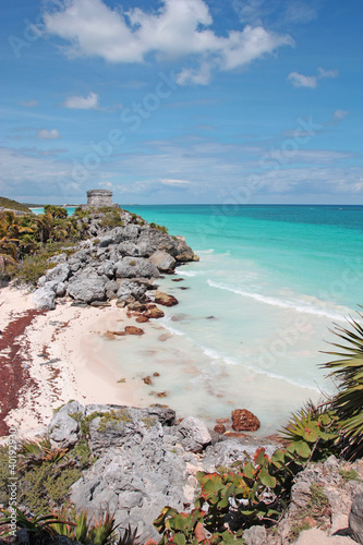 landscape, caribbean, beach, mexico, tulum, riviera, beautiful, blue, cloud, coast, day, green, background, holiday, hot, island, lagoon, leaf, nature, ocean, palm, paradise, plant, relax, resort, sand, scenic, sea, seascape, sky, summer, sun, sunlight, sunny, tour tourism, travel, tree, tropical, vacation, water, idylli