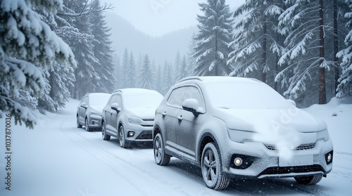 Cars covered in snow after a mountain snowstorm