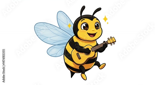 Cartoon bee playing guitar