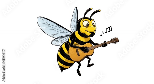 bee, honey bee, guitar, music, illustration, children, cute, funny, animal, insect, pet, cartoon, graphic design