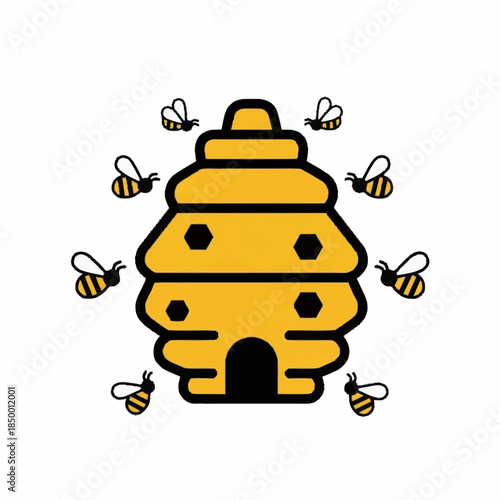 beehive, bee, honey, insect, colony, nature, cartoon, illustration, yellow, black, flying, animal, sweet, hive, bug, wildlife, garden, pollination, nectar, apiary, apiculture, men at work, queen, drone, swarm, comb, wax, honeycomb, sweetness, summer, spring, outdoors, cute, simple, graphic, design, icon, symbol, ecology, environment, conservation, pollinator, striped, wing, antennae, stinger, buzz, natural, habitat