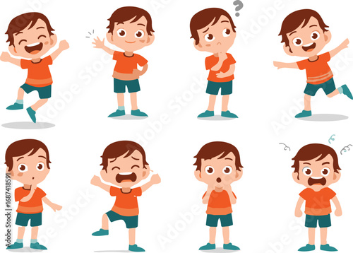 boy, cartoon, emotion, happy, sad, angry, surprised, confused, vector, children, pose, expression, character, illustration, learning