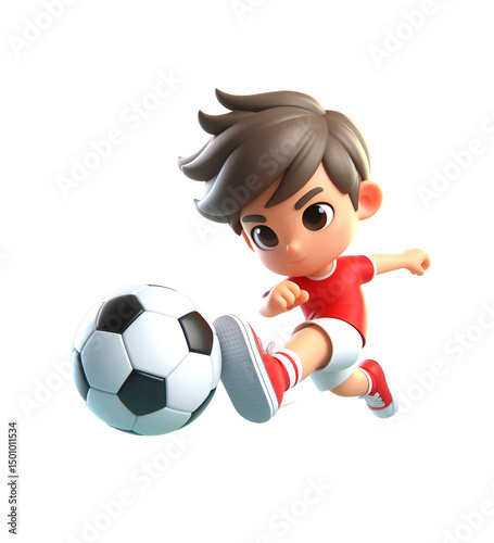 soccer, football, boy, cartoon, three-dimensional, render, kick, ball, children, sport, athlete, red, white, shoe, isolated, black background, game, player, action, cute, digital artwork, illustration, animated, character, football, playing, fun, youth, energy, activity, mascot, football player, soccer player, goal, competition, team, practice, skill, training, match, champion