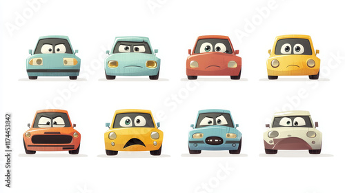 cartoon, broken, car, vector, mouth, funny, background, eye, express, vehicle, transport, purple, green, emoticon, character, auto, isolated, traffic, mascot, smiling, personage, happy, automobile, road, unhappy, comic, speed, face, white, humor, illustration, windscreen, fun, transportation, icon, avatar, truck, angry, emotion, travel, red, taxi, yellow, sad, laugh, set, smile