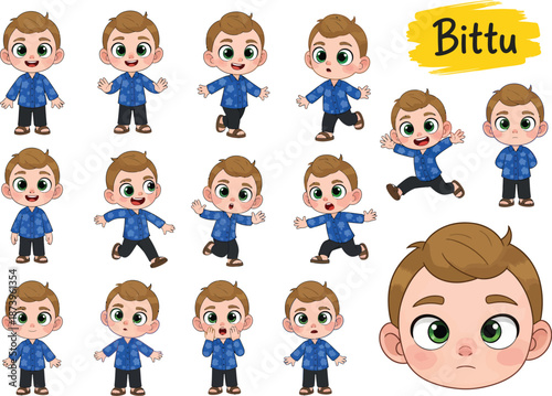 Cartoon character bittu in various poses and expressions