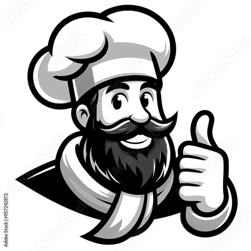 chef, mascot, cartoon, thumb, illustration, food, eatery, logotype, culinary, uniform, hat, necktie, character, friendly, expression, approval, recommendation, symbol, cooking, kitchen, epicure, meal, tasty, delicious, cookery, service, professional, playful, fun, design, graphic, marketing, promotional, branding, identity, business, attire, happy, smiling, cartoonish, colourful, creative, artwork, vector