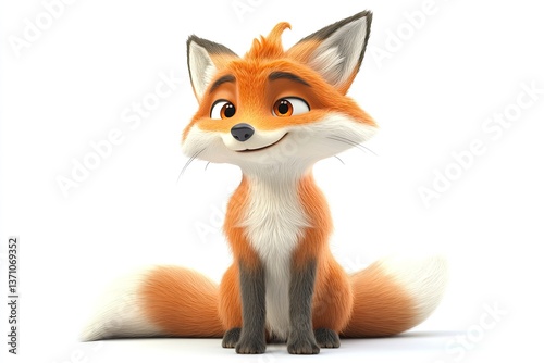 fox, sitting, smiling, cartoon, animation, character, animal, mammal, fur, tail, orange, white, cute, happy, cheerful, friendly, adorable, illustration, isolated, studio shot, digital artwork, concept, mascot, design, render, eye, ear, nose, whisker, looking, pose, wildlife, fauna, playful, children, children, childhood, story