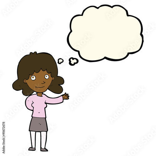 cartoon friendly woman with thought bubble