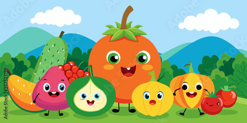 cartoon, fruit, vegetable, children, children, book cover, tropical, design, colourful, comic, cool, expression, eye, lovely, mediterranean, smile, vitamin, taste, nourishment, health, funny, broccoli, vegetarian, apple, collection, isolated, illustration, happy, fun, face, vector, eat, banana, icon, healthy, delicious, summer, sweet, diet, mushroom, character, cute, tomatoes, set, potato, nature, orange, fresh, food