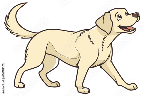 Cartoon Golden Retriever Walking with a Happy Expression A Friendly Dog with a Positive Attitude and Energetic Stance