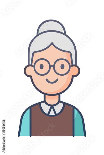 grandmother, woman, elderly, cartoon, goggles, smiling, old, senior, female, retired, illustration, avatar, vector, icon, happy, flat, aged, care, nurturing, kind, wise, character, mother, family, parenting, positive, warm, friendly, expressive, gentle, peaceful, grandmother
