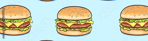 hamburger, food, burger, fast food, eatery, delicious, deliciously, tasty, receipe, kitchen, cooking, meal, lunch, dinner, snack, grill, meat, cheese, lettuce, tomatoes, bun, pattern, repeat, illustration, cartoon, cute, simple, design, graphic, image, background, digital, art, patterned