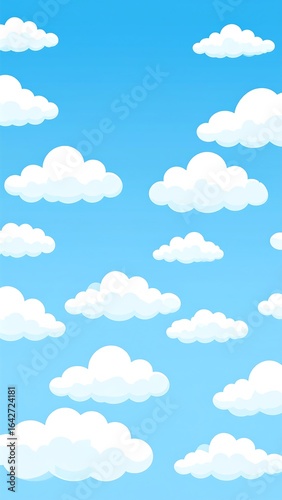 Cartoon illustration of a bright blue sky with fluffy white clouds.