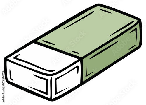 Cartoon Illustration of a Pencil Eraser with a White and Green Design