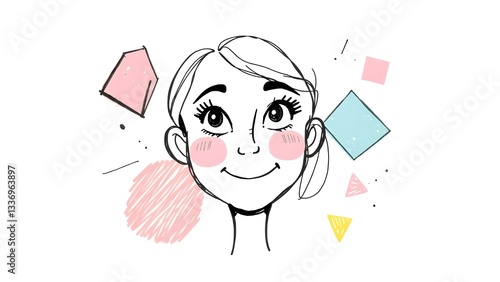 Cartoon illustration of a young woman feeling creative and happy