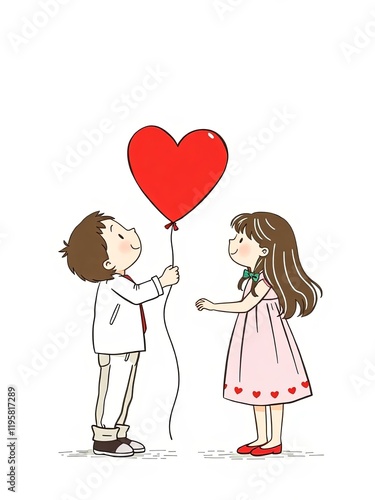 valentine, love, nubes, baby, girl, boy, balloon, cute, adorable, illustration, cartoon, romantic, happy, smiling, confession, feeling, playful, sweet, joy, affection, decoration, festive, celebration, art, drawing, colourful, creative, design, artistic, symbol, holiday, elegant, decorative, simple, bright, cheerful, white, background, character, theme, children, childish, young