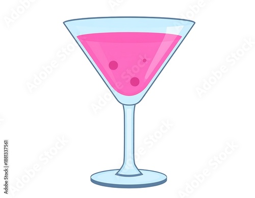 Cartoon martini glass filled with pink liquid with bubbles, pale blue outlines, on a white background