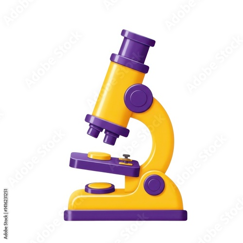 Cartoon microscope in yellow and purple on white background