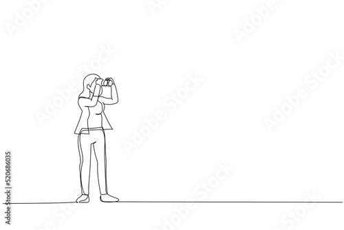 Cartoon of businesswoman Looking Through Binocular. Career direction or work achievement concept. Continuous line art