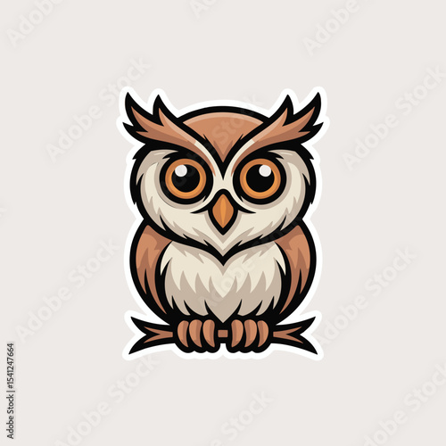 Cartoon owl sits perched on a branch. Illustration of bird, wildlife, nature, cute and comic art.