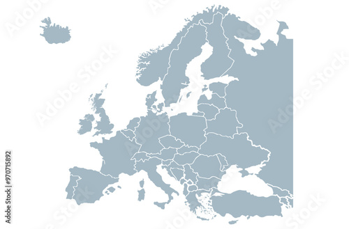 Cartoon pictures of Europe map on white background. All countries of the Europe in Modern colors. Can use for printing, website, presentation element, textile. Vector illustration.