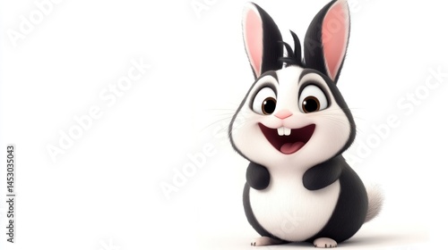 rabbit, cartoon, cute, happy, funny, black, white, animal, animated, digital, character, adorable, smiling, friendly, graphic, design, cartoonish, three-dimensional, art, illustration, expression, positive, playful, hopeful, optimistic, joyful, exuberant, cheerful, graphic, whimsical, animation