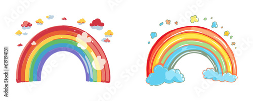 rainbow, cute, cartoon, icon, vector, cloud, bow, children, flat, children, colours, illustration, clip art, nature, blue, curve, graphic, arch, element, isolated, doodle, childish, rain, arc, sky