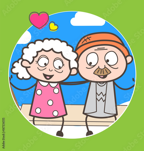 Cartoon Romantic Old Age Couple Vector Illustration