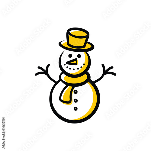 Cartoon Snowman Character in Winter Scarf and Hat Vector Clipart Doodle.
