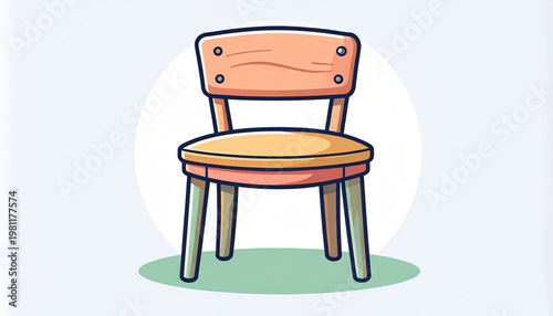 Cartoon style wooden chair with a flat back and round seat furniture object