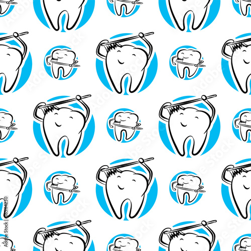 Cartoon teeth with a toothbrush. Seamless vector background.