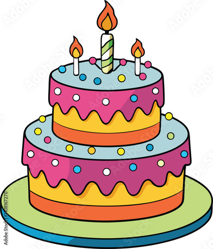 Cartoon Tiered Birthday Cake Illustration - Festive Celebration Graphic