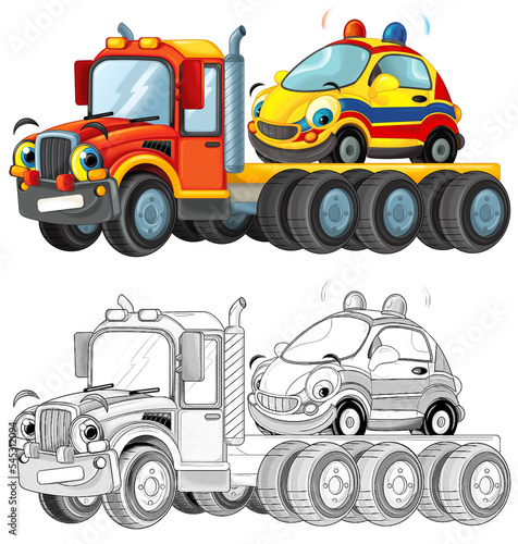 car, truck, tow, transportation, industrial, background, beautiful, brigade, cargo, carriage, cartoon, cheerful, colourful, delivery, drawing, duty, emergency, equipment, fire brigade, firefighter, fireman, freight, funny, happy, heavy, heavy machinery, illustration, industry, isolated, isolated on white, lift, lorry, machine, manga, mechanical, safety, security, service, smiling, technology, traffic