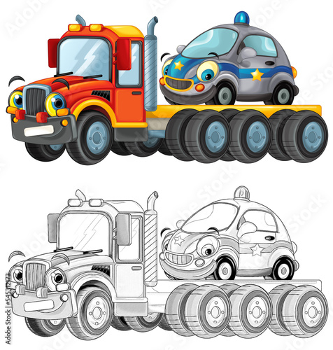 car, truck, tow, transportation, industrial, background, beautiful, brigade, cargo, carriage, cartoon, cheerful, colourful, delivery, drawing, duty, emergency, equipment, fire brigade, firefighter, fireman, freight, funny, happy, heavy, heavy machinery, illustration, industry, isolated, isolated on white, lift, lorry, machine, manga, mechanical, safety, security, service, smiling, technology, traffic