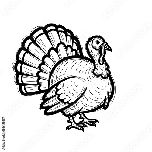 turkey, illustration, cartoon, feather, black, white, bird, animal, design, drawing, graphic, art, poultry, thanksgiving, festive, holiday, farm, nature, wildlife, sketch, hand-drawn, simple, outline, cute, character, creative, symbol, food, harvest, festive season, celebration, autumn, seasonal, domestic, farmyard, heritage, family, traditional, agricultural, fun, imagery, whimsical, artistic, vignetting, outlined, visual, graphic design