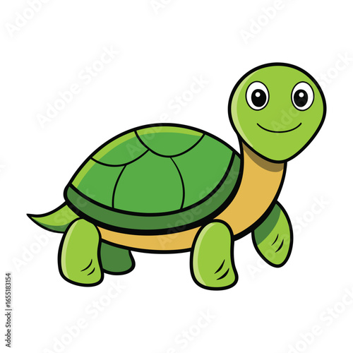 Cartoon turtle illustration, cute green reptile animal character for kids, mascot logo design, zoo, nature, pet, and education projects