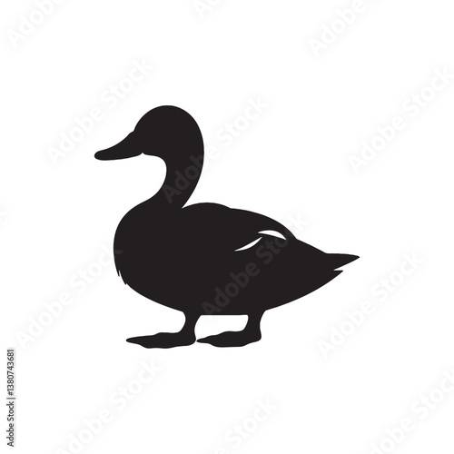 Cartoon vector illustration of a duck isolated on a white background with feathers, wings, and beak