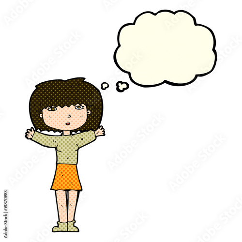 woman, female, girl, raising, arm, air, cartoon, thought bubble, thought, character, cute, drawing, illustration, quirky, hand, drawn, happy, cheerful, retro, doodle, funny, silly, line, crazy, clip, art, clip art