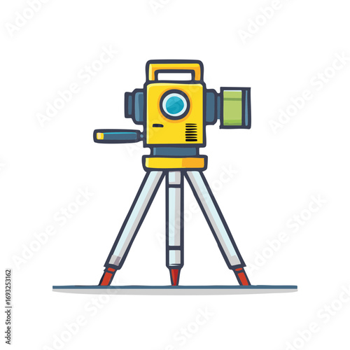 Cartoon Yellow Leveling Instrument on Tripod for Construction Surveying Engineering Tasks and Industrial Precise Measurement