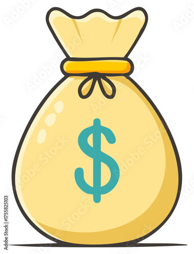 money, bag, sack, pouch, dollar, signs, currency, cash, wealth, finance, financial, saving, savings, profit, income, investment, rich, economy, payment, revenue, success, flourishing, prosperity, budget, banking, funds, earning, earning, bonus, loan, capitalism, cartoon, illustration, vector, graphic, icon, symbol, cute, flat, simple, design, element, drawing, modern, concept, yellow, turquoise, green