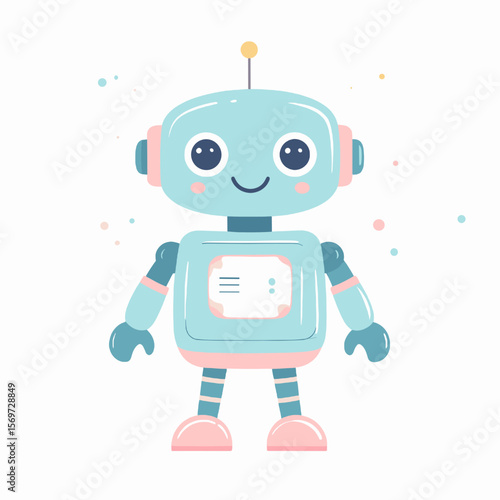 robot, ai, automation, cute, toy, machine, android, technology, artificial intelligence, cartoon, character, digital, illustration, icon, design, future, friendly, modern, isolated, graphic, science, symbol, white background, element, clip art, computer, space, engineering, communication, electronic, innovation, smart, robotic, pink, blue, antennae, happy, smiley, square, geometric, sweet, decorative, domestic, children, childlike, simple, pastel