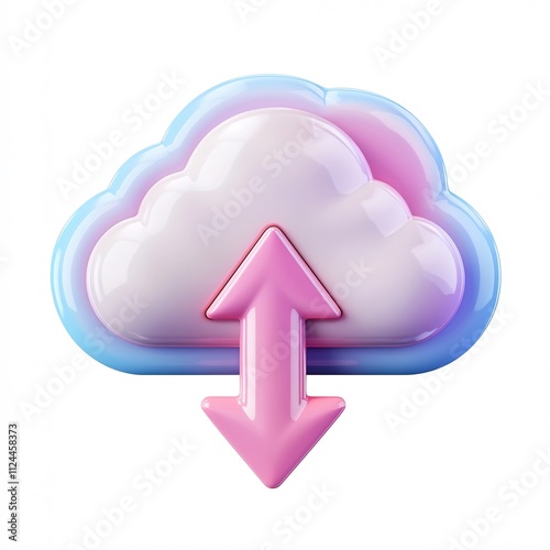 cloud, upload, arrow, icon, three-dimensional, matte, cartoon, round, edge, isolated, background, white, technology, digital, design, graphic, cyberspace, storage, datum, file, transfer, concept, symbol, shape, render, computing, software, network, download, server
