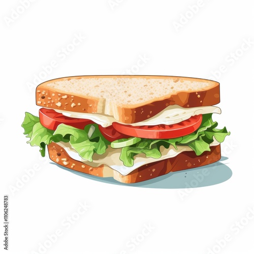sandwich, bread, lettuce, tomatoes, cheese, cucumber, meat, deli, food, snack, lunch, cartoon, illustration, vibrant, colourful, tasty, drawing, healthy, meal, graphic, white background, artwork, ham, isolated, white, breakfast, fresh, salad, vegetable, green, plate, toast, bacon, bun, fast, wheat