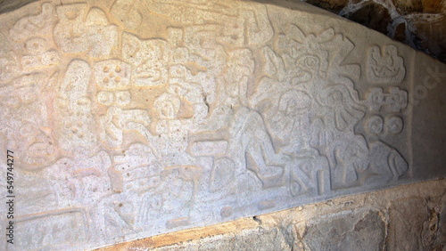 Carved stone at Monte Alban in Oaxaca, Mexico