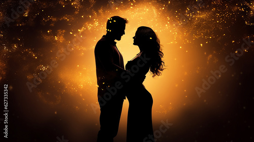 casal envolto em aura dourada de prosperidade e amor