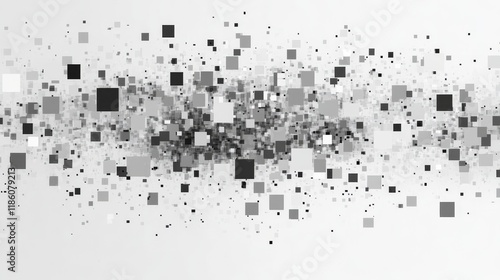 cascading, pixel, fragment, monochromatic, geometric, breakdown, dissolving, mosaic, pattern, abstract, digital, rain, gradient, disintegration, effect, floating, square, element, minimalist, tech, aesthetic, greyscale, scatter, dynamic, particle, flow
