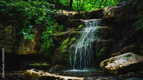 Cascading waterfall in a lush forest