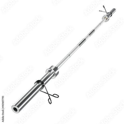Cast Iron Barbell Straight Rod with Spring Lock, weightlifting gym equipment, side view, isolated on white background. 3D illustration