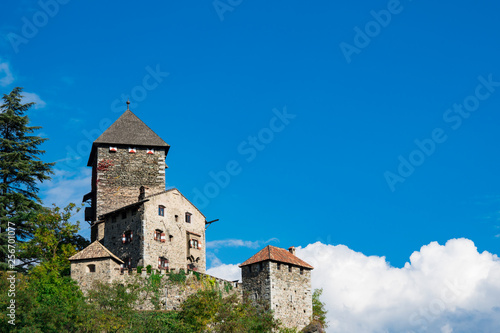 Castel Branzoll in Chiusa (Klausen), Italy. blue sky, space for text