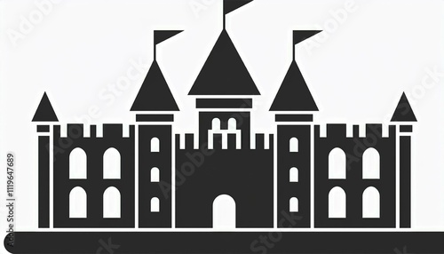 cartoon, illustration, castle, vector, design, simple, graphic, element, cute, isolated, background, icon, fantasy, building, flat, art, house, children, tower, white, architecture, kingdom, logotype, children, silhouette, happy, palace, mediaeval, collection, symbol, drawing, old, game, flag, wall, home, decoration, play, king, holiday, party, children, template, print, fortress, frame, tree, book, black